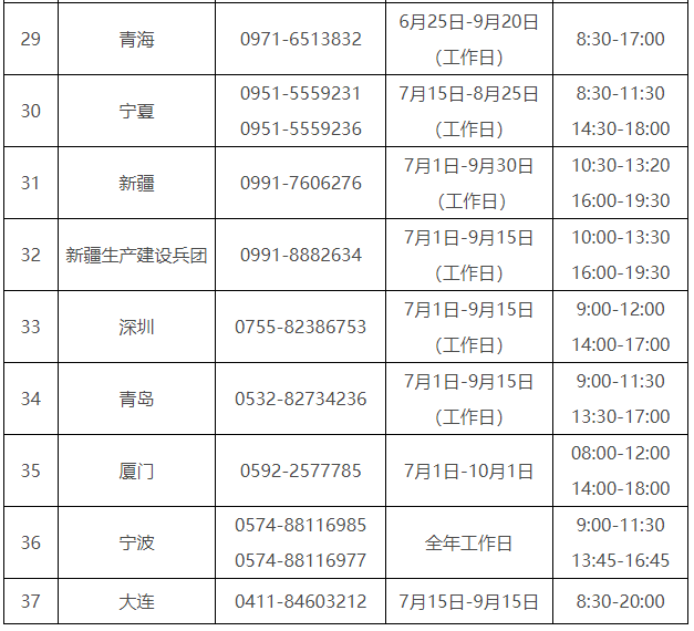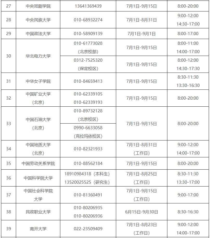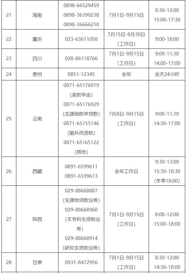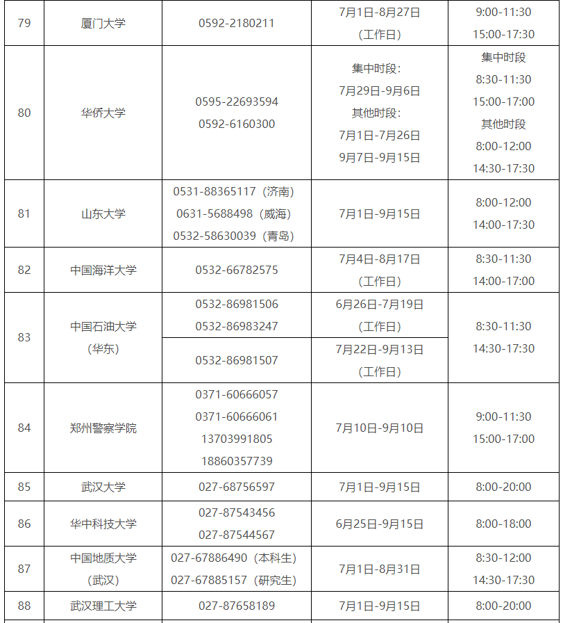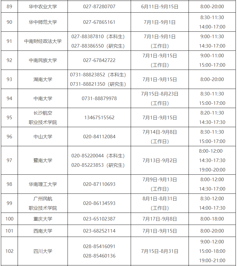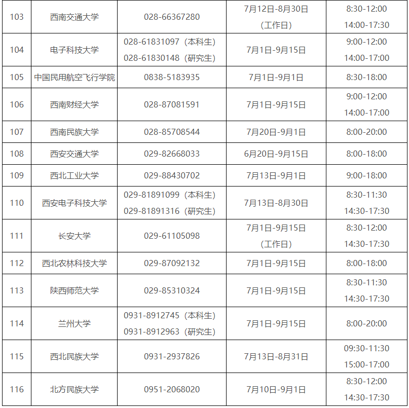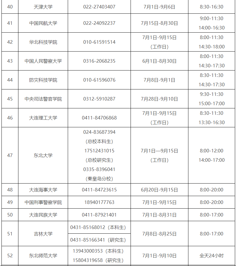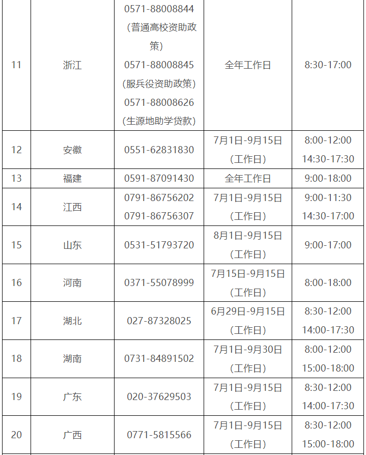 各省(自治区、直辖市)和中央部门所属高校同步开通了热线电话,电话号码与开通时间可查看汇总表。