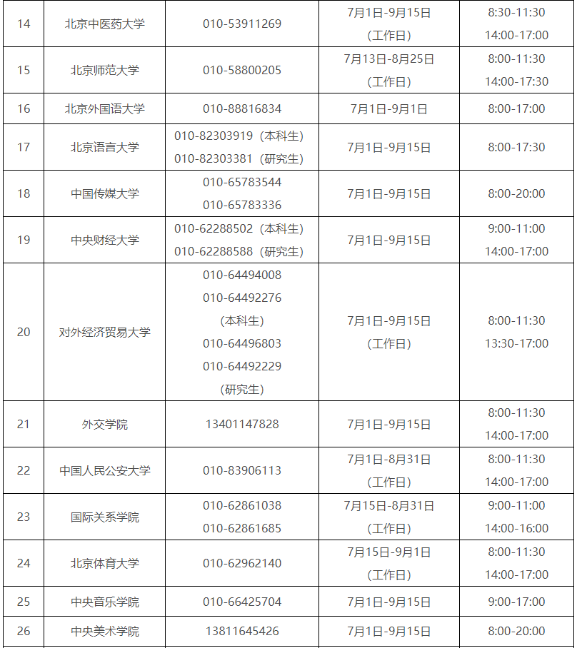 受理时间:7月1日-9月15日(工作日)8:00-12:00 15:00-18:00