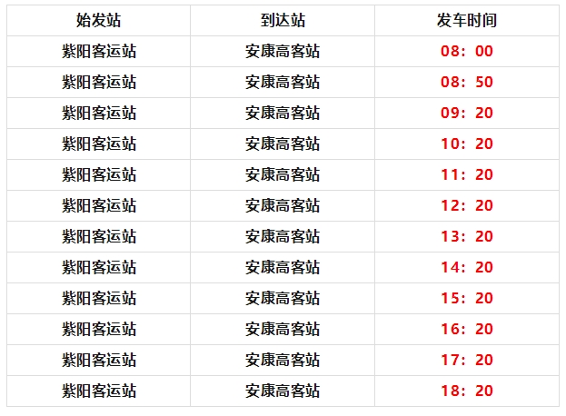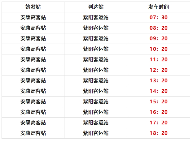 由紫阳客运站发往安康高速客运站,每日12班,发车时间为:jhu安康新闻网