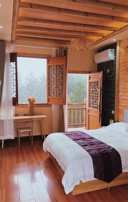 快活岭民宿依山而建,来到这里,收尽山光水色,古朴而现代,简约大方,让您尽情畅游于山水之间。