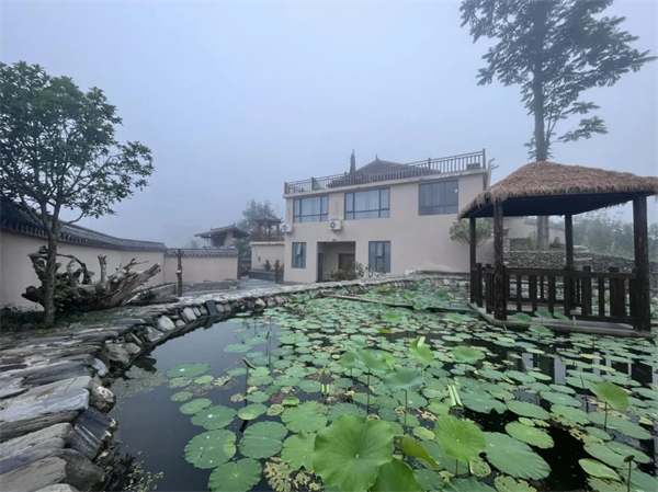 依山而建,筑于高处,坐北观南,拥有极佳的自然景观,屋后环绕潺潺溪涧从山顶流下,这里入眼处处是风景,耳畔阵阵是乐章。