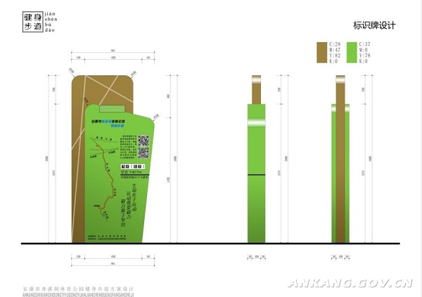 铺设环保透气型塑胶颗粒步道面层、道路划线和面层标识、安装起终点告示牌等。
