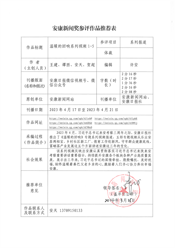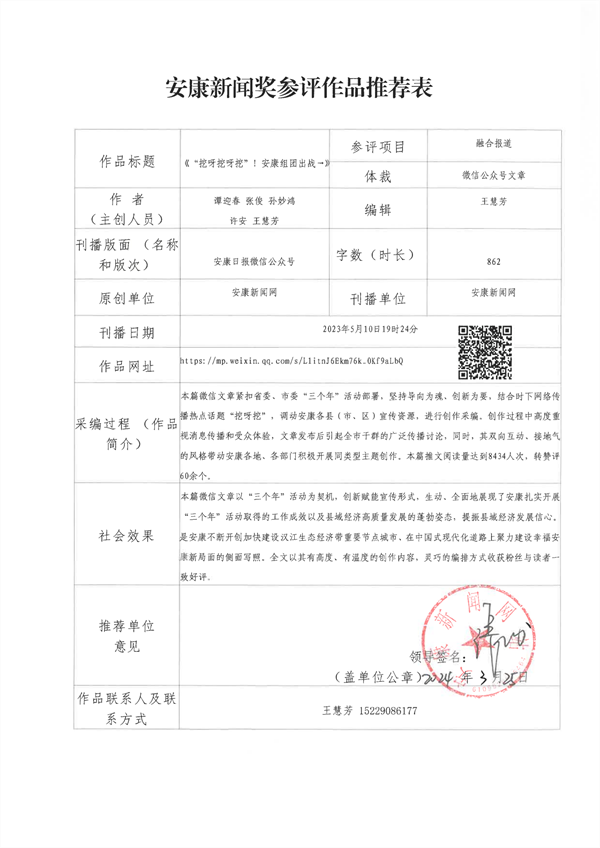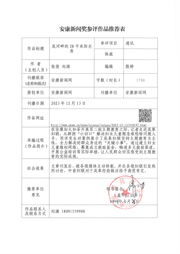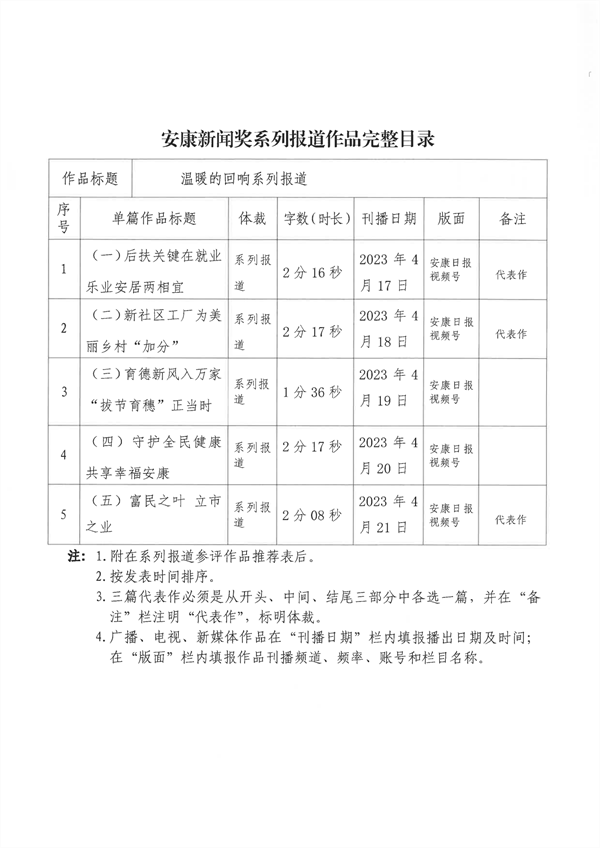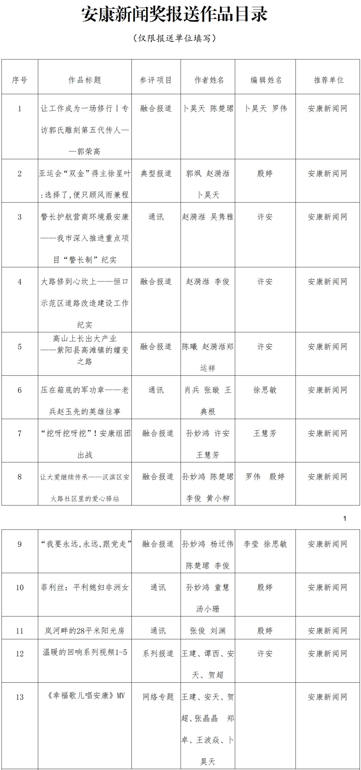 经过编委会推荐、社党委研究决定,拟推荐以下13件新闻作品参评2023年度“安康新闻奖”。公示时间从2024年3月25日至2024年3月29日,公示期为5个工作日。如有不同意见,请向安康日报社机关纪委、新闻管理部反映。nyB安康新闻网