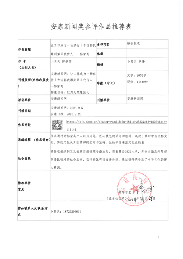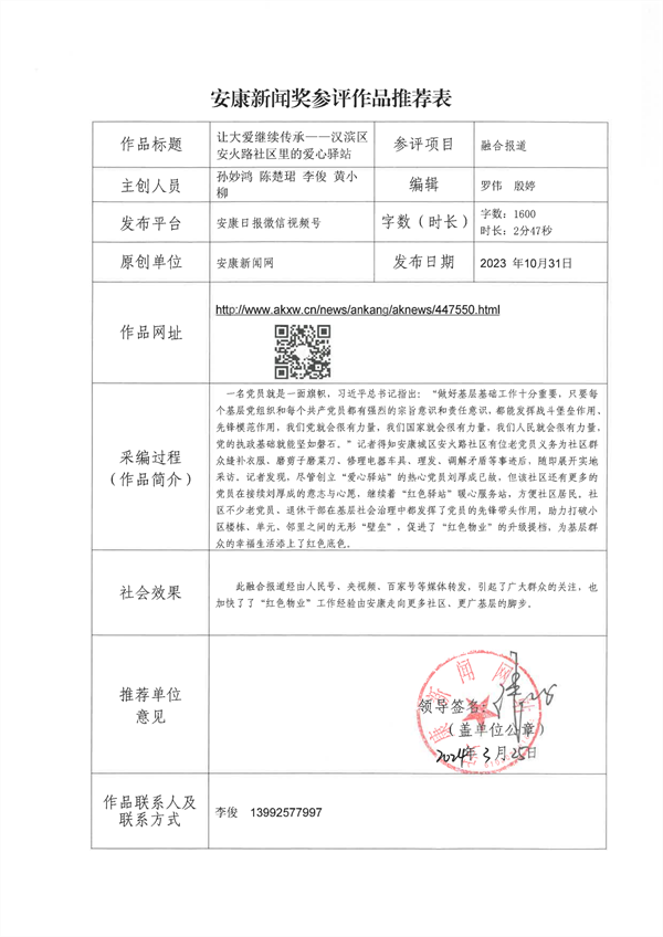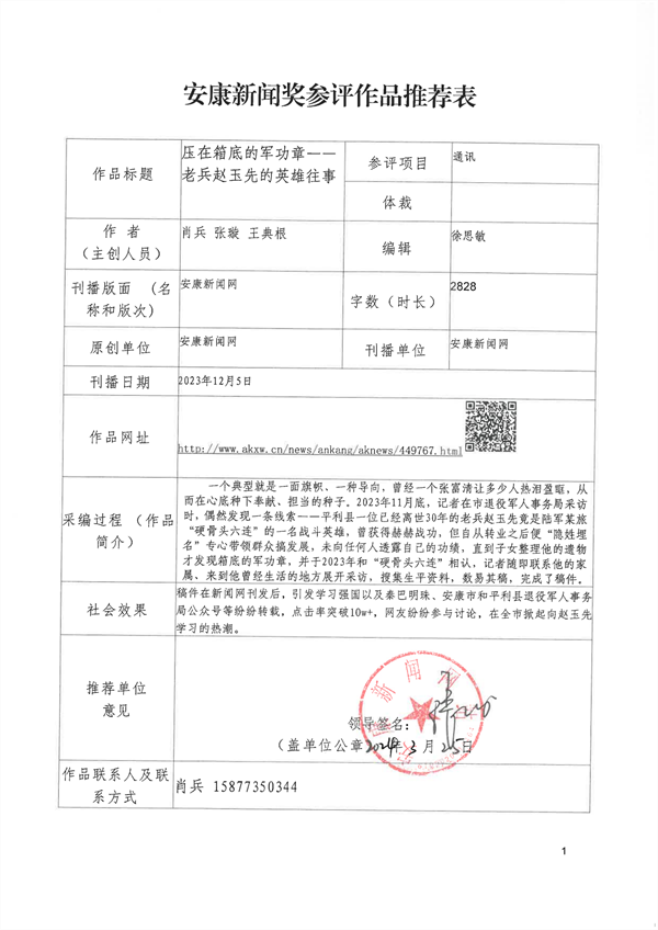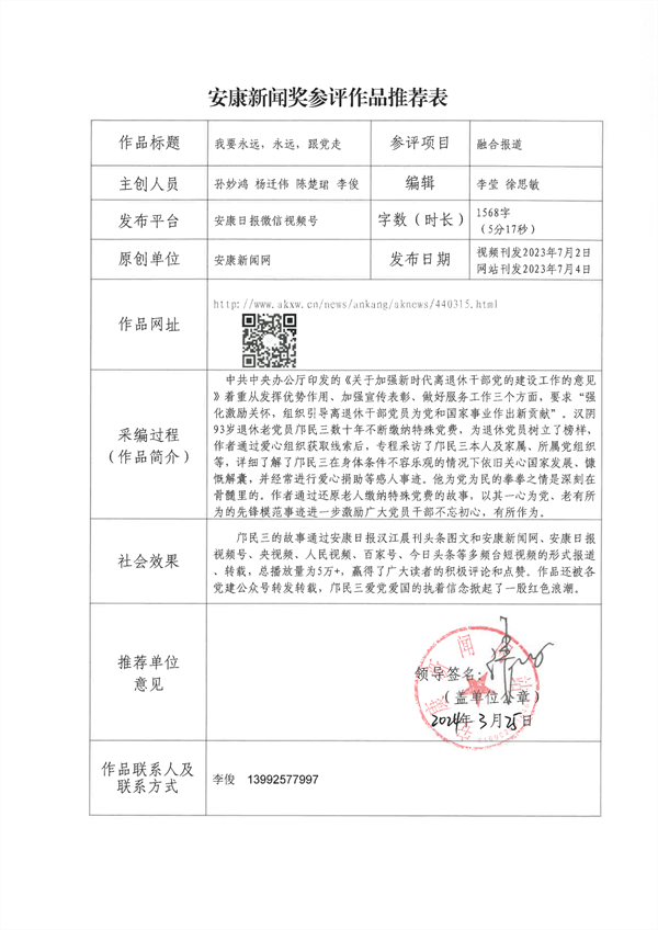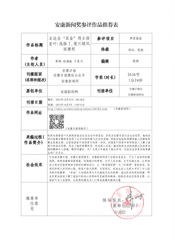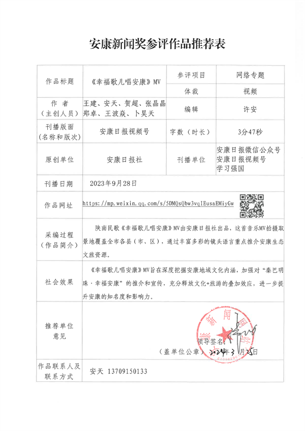 经过编委会推荐、社党委研究决定,拟推荐以下13件新闻作品参评2023年度“安康新闻奖”。公示时间从2024年3月25日至2024年3月29日,公示期为5个工作日。如有不同意见,请向安康日报社机关纪委、新闻管理部反映。nyB安康新闻网