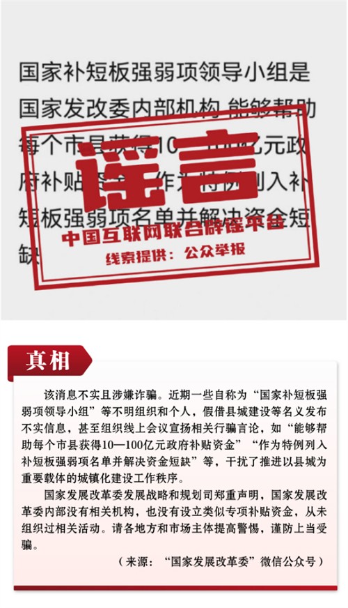 谣言2:有“国家补短板强弱项领导小组”并设立专项补贴?