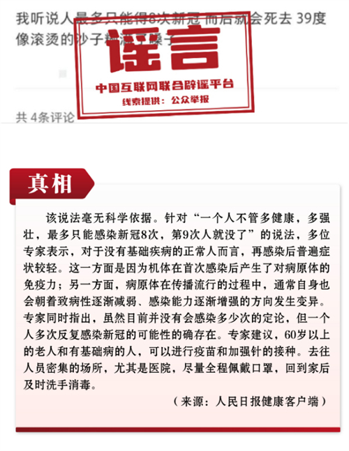 谣言9:一个人最多感染8次新冠?