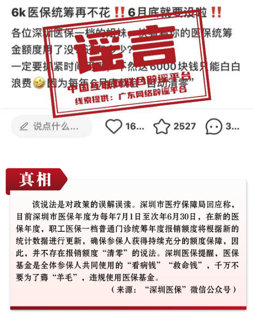 谣言6:深圳医保统筹额度再不花,6月底就“清零”?