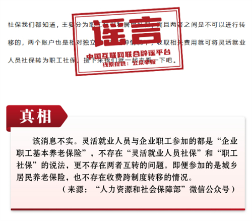 谣言1:收费可将灵活就业人员社保转为职工社保?