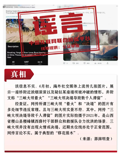 谣言5:三峡大坝“着火”“决堤”?