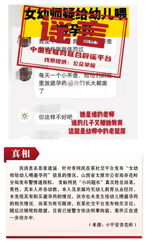 谣言8:山西一女幼师给幼儿喂避孕药?