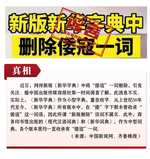 谣言6:新版《新华字典》删除了“倭寇”一词?