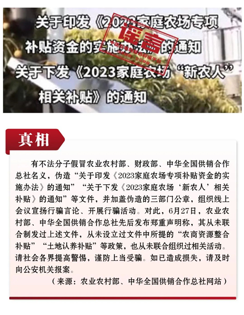 谣言1:三部门联合发文将发放家庭农场等专项涉农补贴?