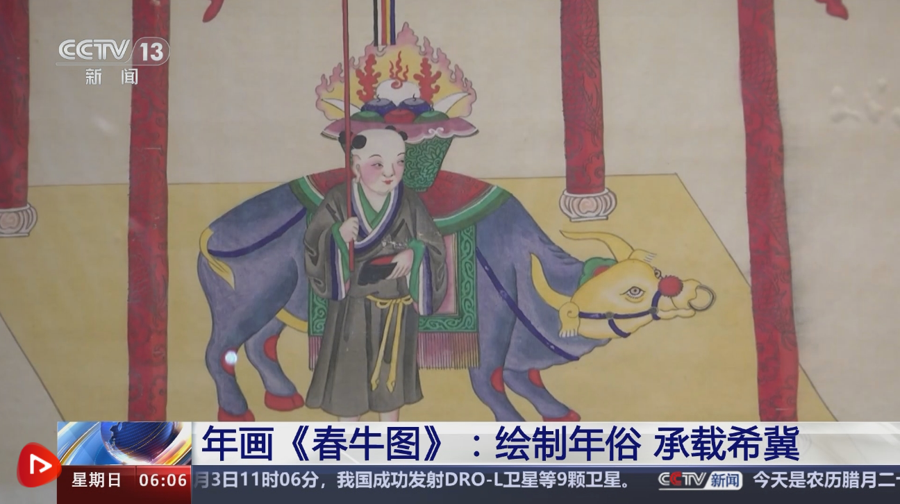 《春牛图》也称为《句芒神牛图》,这幅《春牛图》绘制于清光绪五年,图中春牛和句芒神的位置和颜色均与当年的五行干支相关。在清代,每逢立春时节,顺天府都会向皇家献上《句芒神牛图》用于迎春仪式。它不单是一幅画,更承载着人们对于新的一年风调雨顺、喜获丰收的美好愿望。