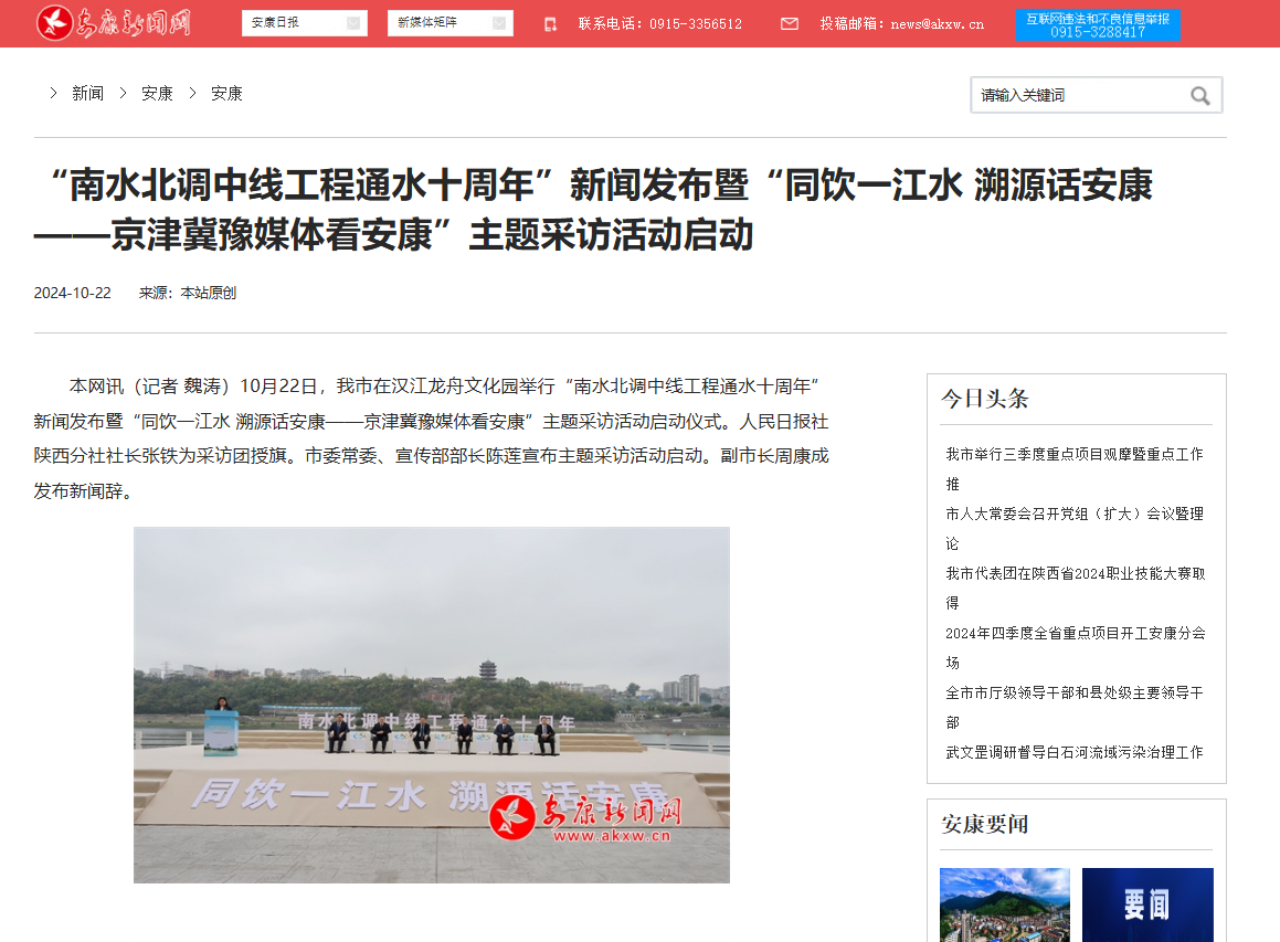 《“南水北调中线工程通水十周年”新闻发布暨“同饮一江水 溯源话安康——京津冀豫媒体看安康”主题采访活动启动》(2024-10-22发布)