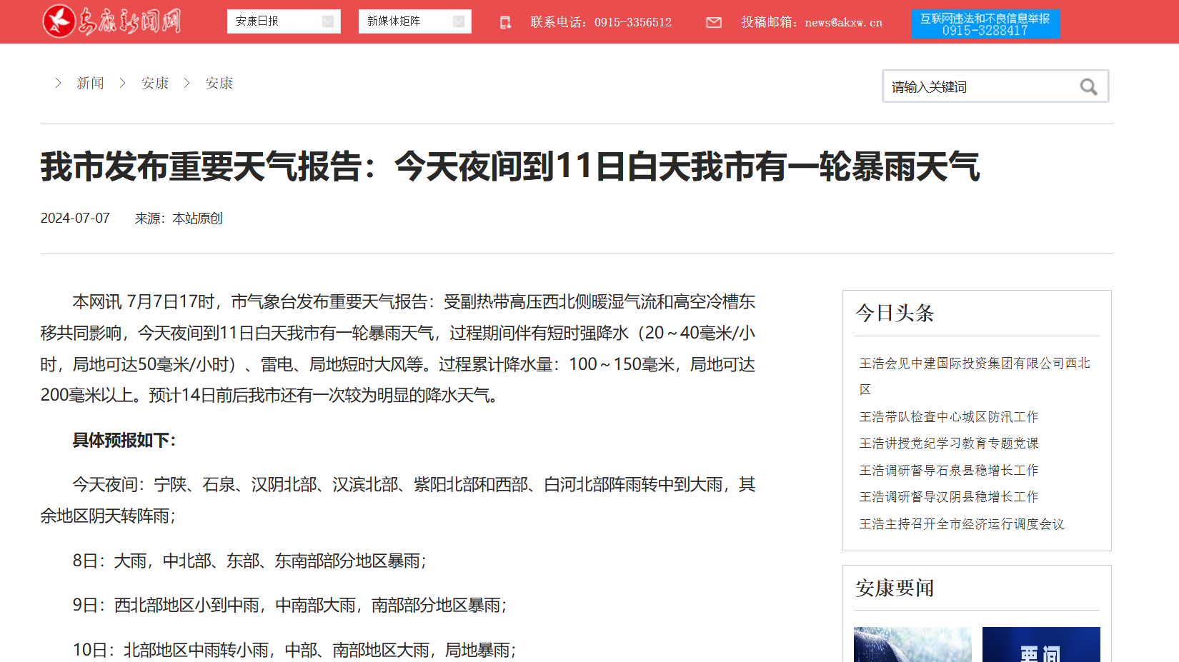 《我市发布重要天气报告:今天夜间到11日白天我市有一轮暴雨天气》(2024-07-07发布)
