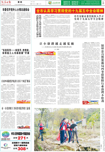 二是开设“全市认真学习贯彻党的十九届五中全会精神”栏目,刊发全市学习贯彻落实十九届五中全会精神稿件200多篇。十九届五中全会精神宣讲启动后,全程跟进宣讲团成员深入各县区各部门宣讲全会精神的动态报道,掀起了学习贯彻十九届五中全会精神的热潮。