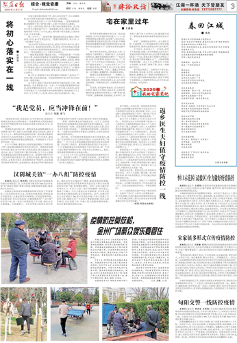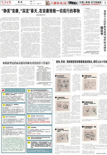 积极搭建民生服务平台,帮助群众解决实际困难。2020年,本报坚持正面宣传,开设“众志成城抗击疫情”栏目,深入宣传、充分报道党中央重大决策部署、联防联控措施、防控疫情的成效,使全市群众在坚定信心的同时,兴起了群防群控热潮。充分发挥服务群众、引导群众功能,先后开设“2020春我的宅家笔记”等栏目刊发稿件30多篇,引导市民不盲目跟风不过度防护,有效及时疏导公众焦虑恐慌等情绪,凸显了主流媒体的传播力影响力和公信力。