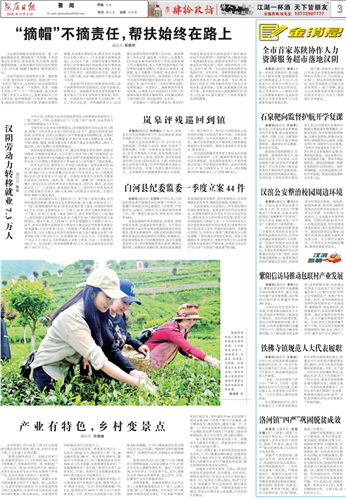 强化宣传助推乡村振兴。本报不断优化宣传报道选题,高起点策划,开设“征烟起处唱大风”等栏目,刊发汉滨《好政策加持稳定脱贫》、平利《“摘帽”不摘责任,帮扶始终在路上》、汉阴《巩固提升,在春天整装出发》等系列稿件,持续紧盯问题整改,引导全市在巩固脱贫攻坚成果的同时与乡村振兴有效衔接。