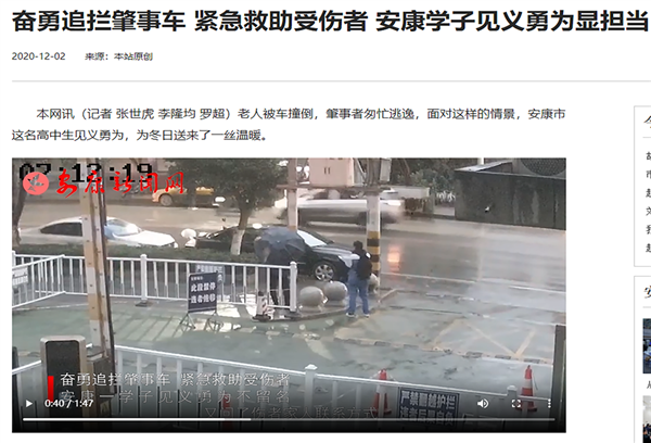 “追车少年”石梦林的见义勇为的事迹报道轰动全网,中央级媒体纷纷转载,一时间,安康正能量引发全国关注。此外,网站还发布了《65岁退役军人周广民不畏严寒入江勇救落水者》《民警唐祖斌的“真功夫”和“细心思”》等一批正能量新闻,引导关怀人、启迪人,传递大爱,激发向上向善的精神力量。
