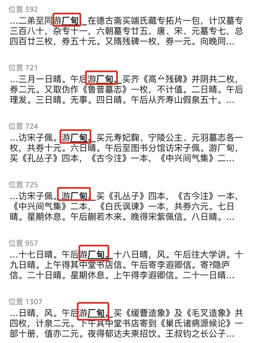 第三,虽然鲁迅作为钟爱琉璃厂旧书肆的文人,日记中自述经常去琉璃厂,但“逛琉璃厂”并非鲁迅的表达风格,“游厂甸”“往琉璃厂”“至琉璃厂”才是鲁迅的表达风格。