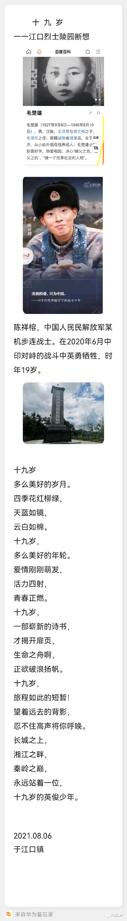 时间带不走一颗永远向上的心,一代人终将老去 ,但 总 有人正年轻。遥望远方的光芒,脚下自有力量。时代在进步,民族在振兴,青年 任重而道远。不忘初心,政治 铸魂,传承红色基因,年轻人才会沿正确的方向前行。一百年以前,鲁迅曾说过"愿中国青年都摆脱冷气,只是向上走,不必听自暴自弃者流的话,能做事的做事,能发声的发声。有一分热,发一分光。就令萤火一般,也可以在黑暗里发一点光,不必等候炬火。此后如竟没有炬火,我便是唯一的光。”一百年来,萤火终成火炬,千万青年的光和热照耀温暖了这个世界。光明在前,理想存胸,任山高路远,总有人为此而往!谁也不会忘记这十九岁的青春。