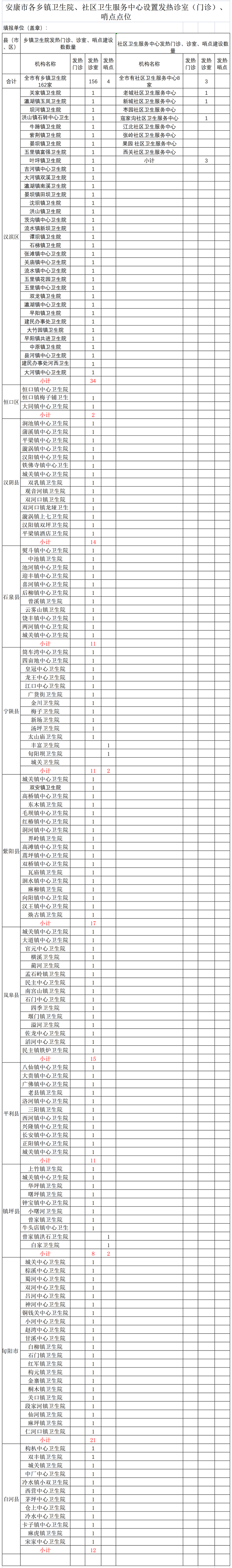 安康市各乡镇卫生院、社区卫生服务中心设置发热诊室(门诊)、哨点点位