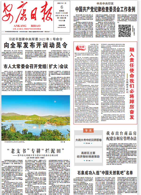 (2022年1月6日安康日报01版“融入责任使命我们必将踔厉奋发”)