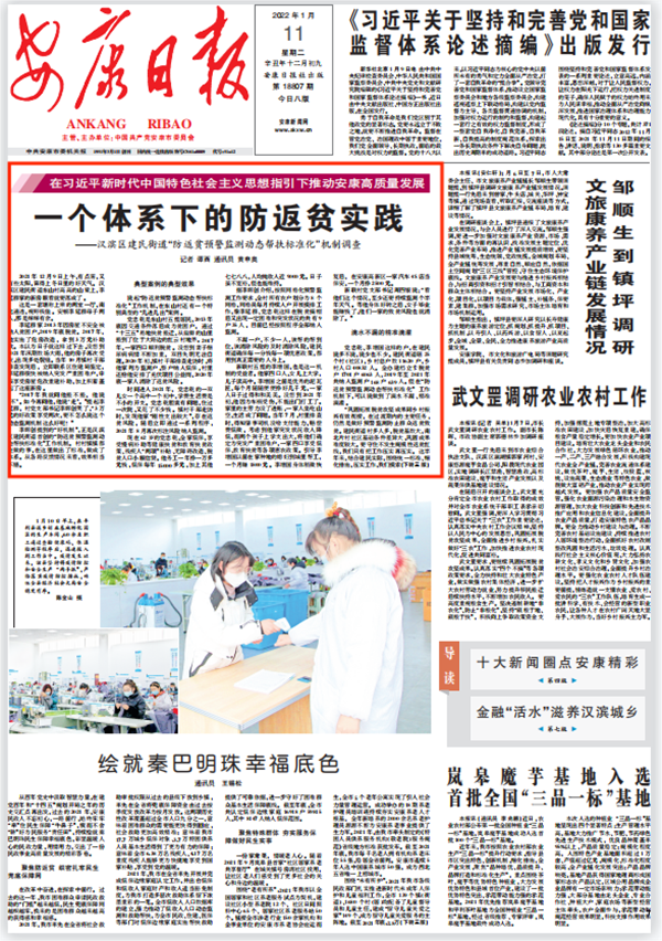 (2022年1月11日安康日报01版“一个体系下的防返贫实践”)