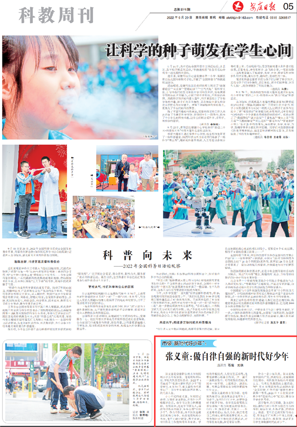 (2022年9月29日安康日报05版“让科学的种子萌芽在学生心间”)