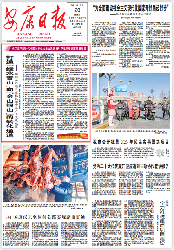 (2022年12月20日安康日报01版“打通“绿水青山”向“金山银山”的转化通道”)