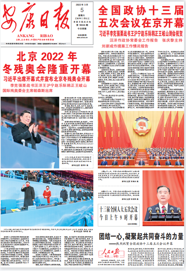 (2022年3月5日安康日报01版“北京2022年冬残奥会隆重开幕”、“全国政协十三届五次会议在京开幕”)
