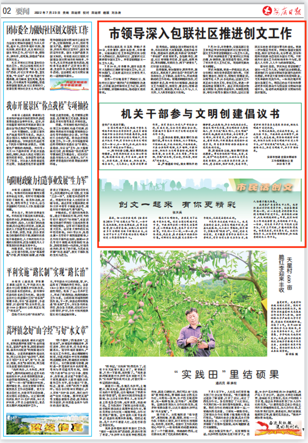 (2022年7月23日安康日报02版“市领导深入包联社区推进创文工作”)