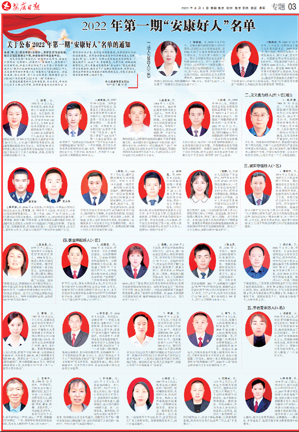 (2022年8月1日安康日报03版“2022年第一期‘安康好人’名单”)