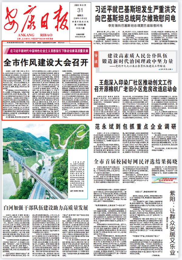(2022年8月31日安康日报01版“全市作风建设大会召开”)