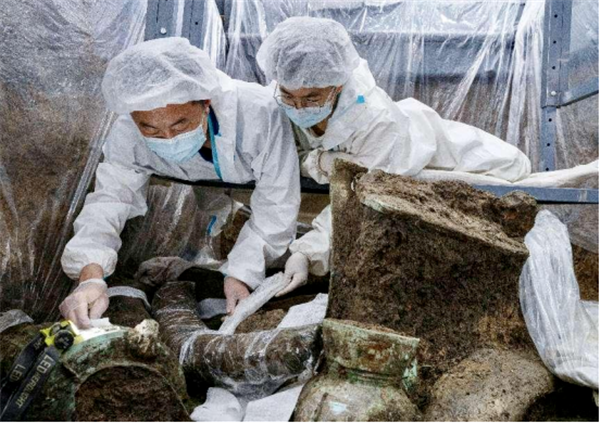 2019年秋,三星堆遗址祭祀坑区考古发掘重启,新发现的6个“器物坑”发掘出土青铜器、金器、玉器、牙雕等文物共计17000余件,包括青铜大面具、青铜神坛等重要文物,“再醒惊天下”。