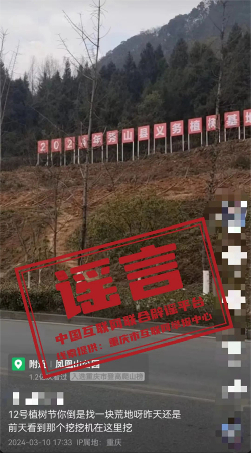谣言:重庆市秀山县凤凰山公园把原有树木挖了来办植树节?
