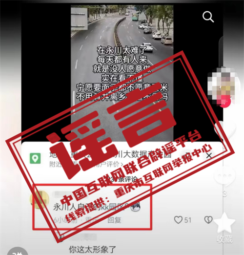 真相:近日,重庆永川网民周某某在某短视频平台关于永川某产业园区招聘的视频信息下面评论:“永川人自己的KK园区”(缅甸一臭名昭著的电信诈骗窝点名为KK园区),造成不良社会影响。经核查,周某某曾到该产业园区应聘过,对产业园区存在偏见。目前,周某某因涉嫌在网络上散布谣言扰乱公共秩序,被警方依法处以行政处罚。(来源:“重庆辟谣”微信公众号)