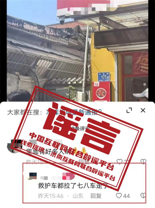 谣言:济南一门店坍塌,救护车拉了七八车?