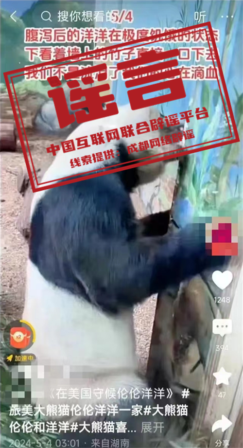 谣言:旅美大熊猫“洋洋”口吐白沫、饿得啃墙皮?