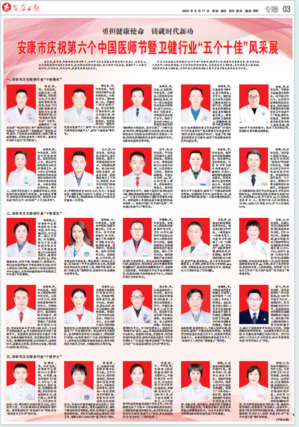 (2023年8月17日安康日报03版《安康市第六个中国医师节暨卫健行业“五个十佳”风采展》)