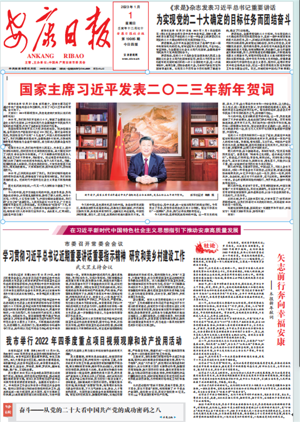 (2023年1月1日安康日报01版社论《矢志前行奔向幸福安康——新年献词》)