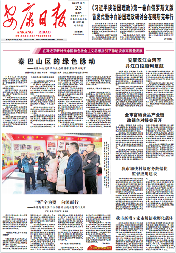 (2023年12月23日安康日报01版陕西日报、安康日报、县级融媒体中心记者三级联动《秦巴山区的绿色脉动——安康加快建设汉江生态经济带重要节点城市》)