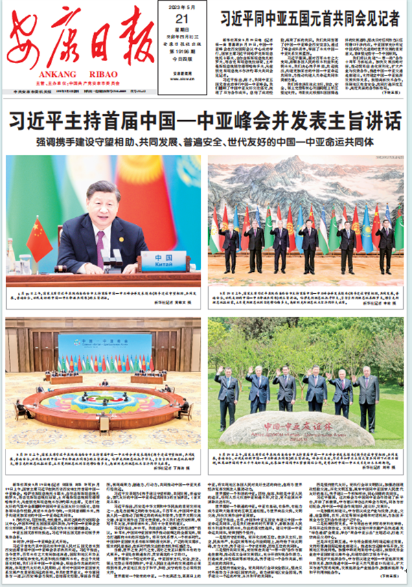 (2023年5月21日安康日报01版《习近平主持首届中国——中亚峰会并发表主旨讲话》)
