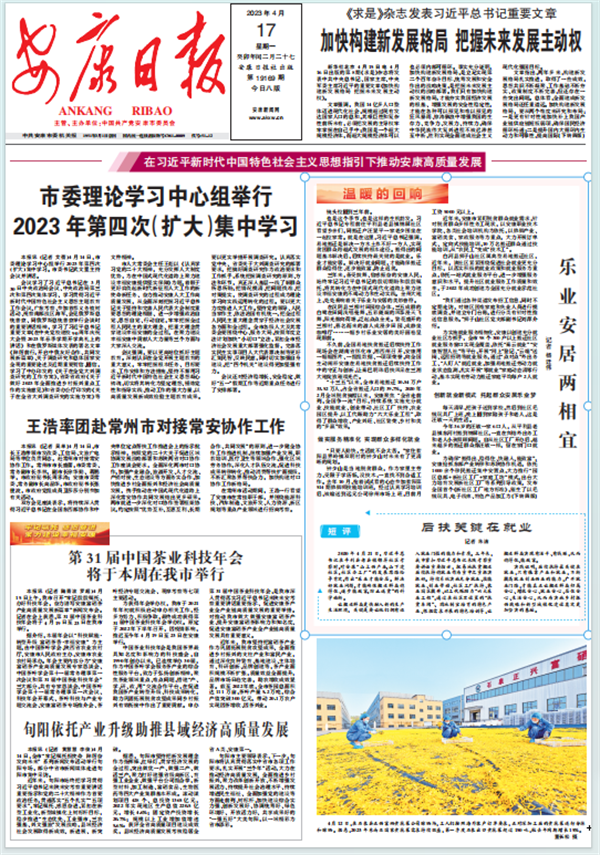 (2023年4月17日安康日报01版开设“在习近平新时代中国特色社会主义思想指引下推动安康高质量发展”“温暖的回响”栏目)