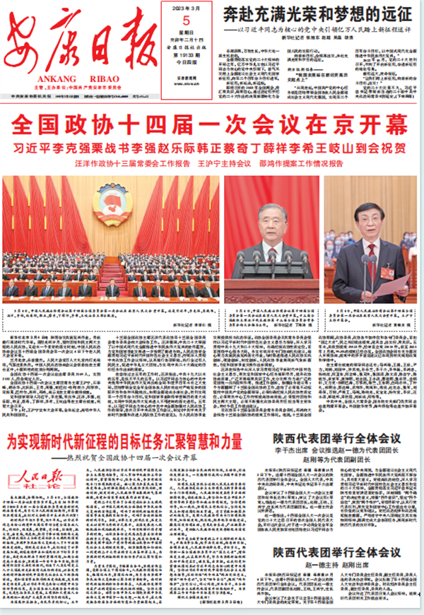 (2023年3月5日安康日报01版《全国政协十四届一次会议在京开幕》)