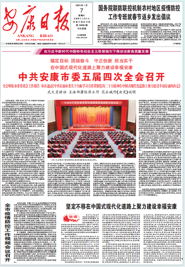 (2023年1月7日安康日报01版《中共安康市委五届四次全会召开》)