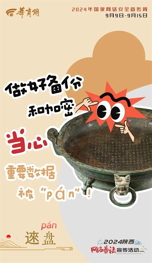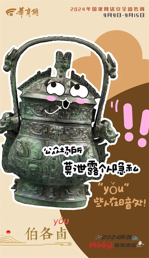 9月9日下午,陕西第十一届国家网络安全宣传周将在宝鸡市开幕。宝鸡,曾出土无数青铜国宝,被誉为“青铜器之乡”。今天“国宝”有话说,“点醒”你我他→
