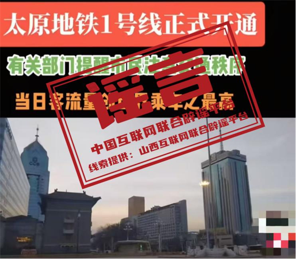 真相:近日,有网民发布短视频称“太原地铁1号线正式开通,有关部门提醒市民注意交通秩序,当日客流量创世界乘车之最高”。经与当地交通部门核实,此信息内容不实。该网民行为违反《网络信息内容生态治理规定》第六条第八款规定,网信部门已将线索移交公安部门进一步调查处理。(来源:“山西网络举报”微信公众号)