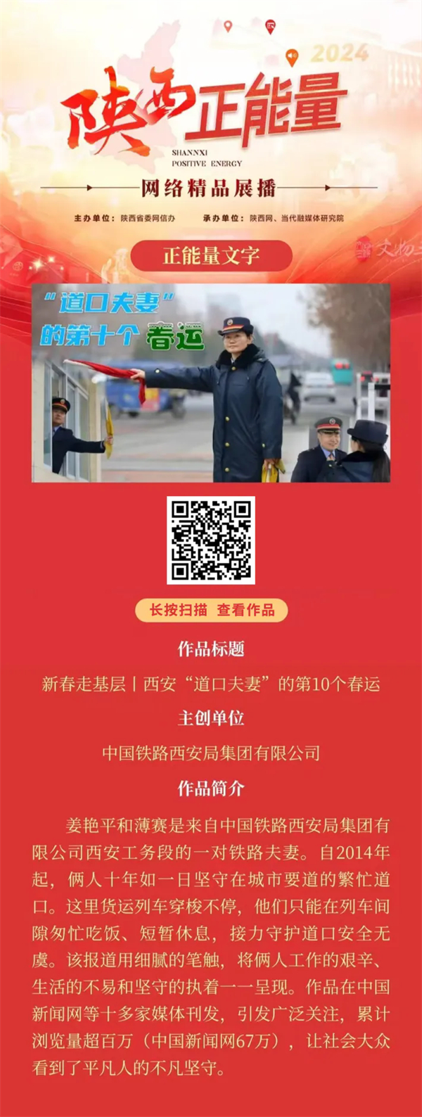 2024陕西正能量网络精品展播丨正能量文字:新春走基层丨西安“道口夫妻”的第10个春运