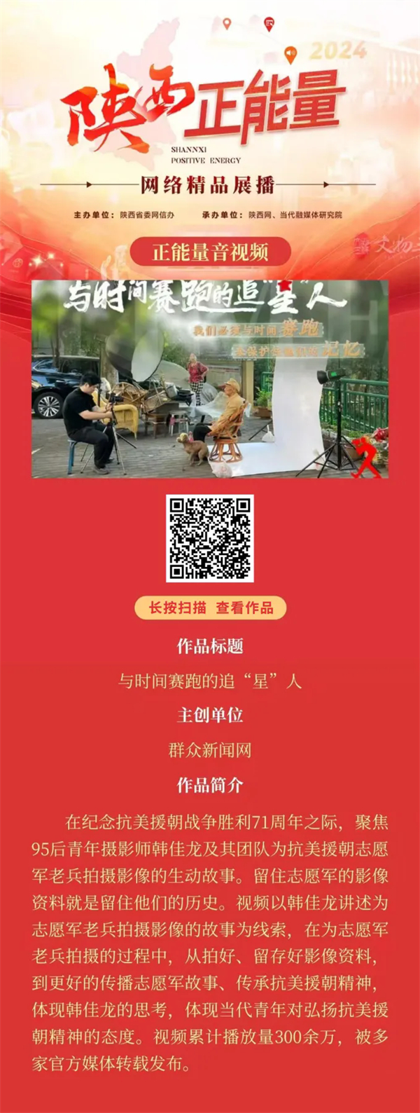 2024陕西正能量网络精品展播丨正能量音视频:与时间赛跑的追“星”人